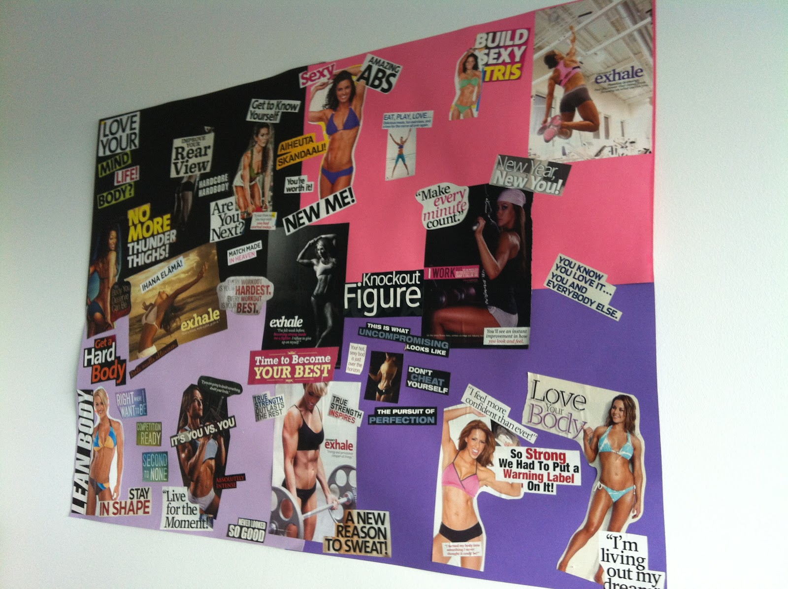 Kannattaa tehdä oma motivaatiotaulu, nopea ja toimiva muistuttaja! Et tarvitse muutakuin palan kartonkia, hieman liimaa ja ison pinon valitsemiasi kuvia sekä tekstejä. Hyvänä vaihtoehtona on myös laittaa jokin kuva tai teksti jääkaapin oveen, joka muistuttaa aamuin illoin tavoitteistasi ja pitää sinut oikeilla raiteilla.
