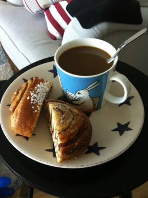 Herkullisen aamun tästä teki myös, Mikon ostamat ylläri-korvapuustit, jotka hän oli aamusta käynyt kaupasta ostamassa. Ihanan tuoreita! NAM.