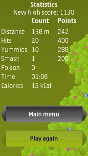 ”Isosilmäinen Bjong-etana ryömii iPhoneni ruudussa liikkeitteni mukaan. Etanan päälle laskeutuu taivaalta palloja, jotka minun täytyy pitää ilmassa kävelemällä ja loikkimalla sivuttain. Kun vaihdan juoksuun, kerään enemmän pisteitä.”