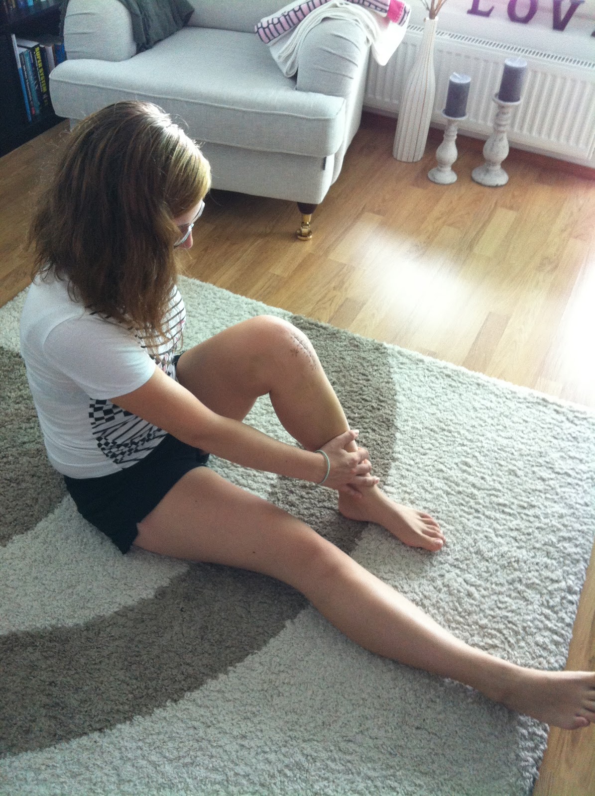 Viime keskiviikkona olin ensimmäisellä fysioterapiakäynnillä ja sain sieltä kotijumppaohjeet. Lupailin laittaa kuvalliset kertomukset mitä oon tehny ja tässä ne nyt olisivat! :)