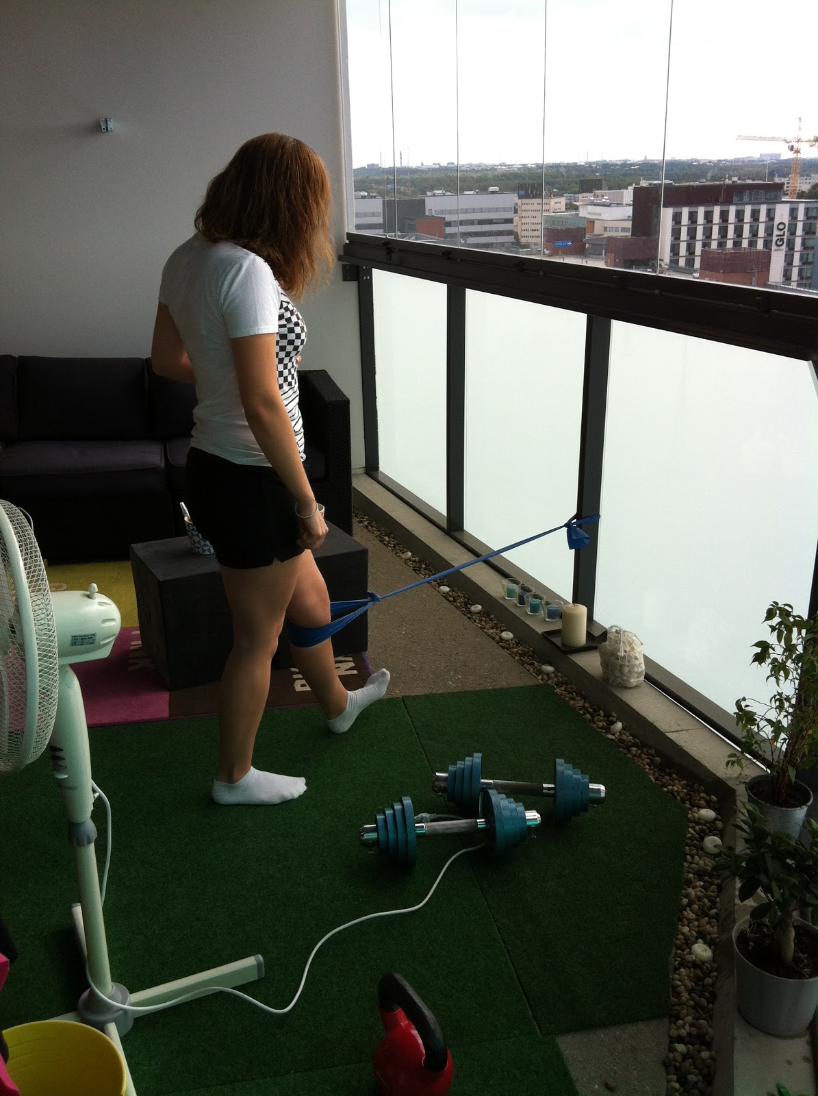 Yritän tehdä koko treenin kolme kertaa päivässä, mutta kaksi näyttää olevan realistinen näin viikonloppuna kun on vieraita kylässä. Polvi tuntuu päivä päivältä paremmalta ja odotankin jopa innolla huomista fysioterapiakäyntiä! Jee!