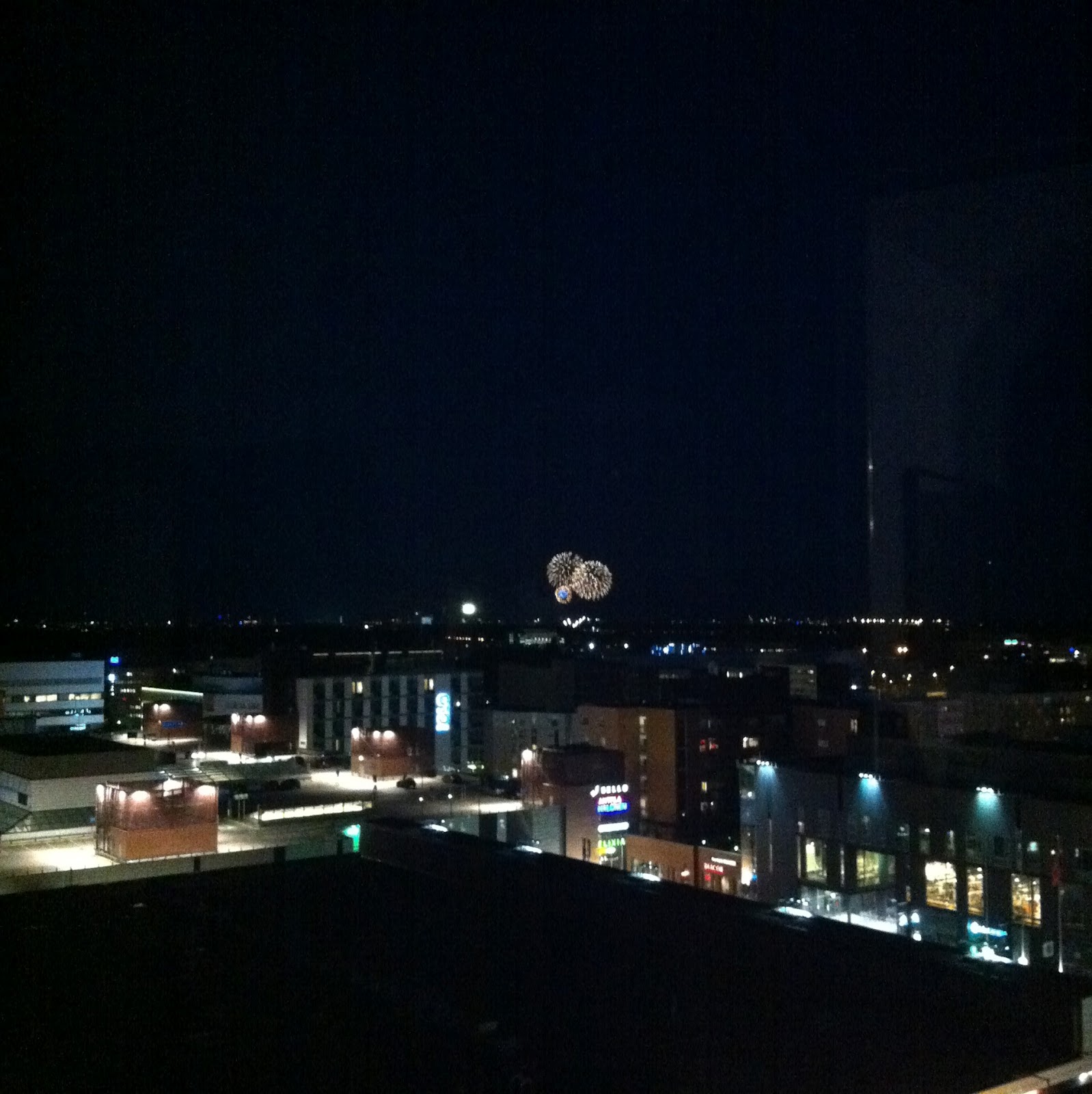 Plussana kuva eiliseltä. Nelosen ilotulitukset näkyy kivasti meijän parvekkeelle. :)