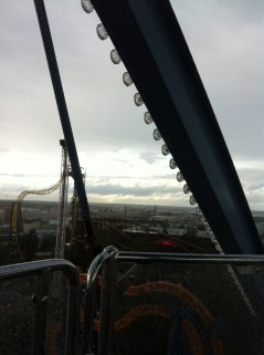 Maailmanpyörässä pelotti ja oli jäätävän kylmä, sadetta tuli vaakatasossa! Pisteenä i:n päällä, laite pysäytettiin kun olimme ylimpänä eli kaikkein pahimmassa myrskyssä.