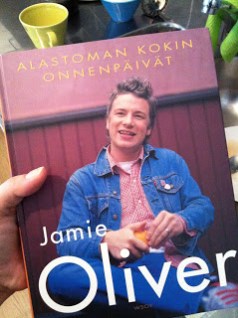 Syöminen unohtui melkolailla itseltäni koko päiväksi. Aamupalan sain syötyä, mutta seuraava olikin sitten 20:30 maissa Mikon vanhempien luona syömä iltapala. Mikon veli tuli vielä käymään siellä, saatiin ihan mahtava kirja lahjaksi: Jamie Oliver – Alastoman Kokin Onnenpäivät! Tarkoituksena tietysti, että mies kokkaa alastomana ja mä pääsen viinilasi kädessä nauttimaan sohvalla! ;) Eikö vain?