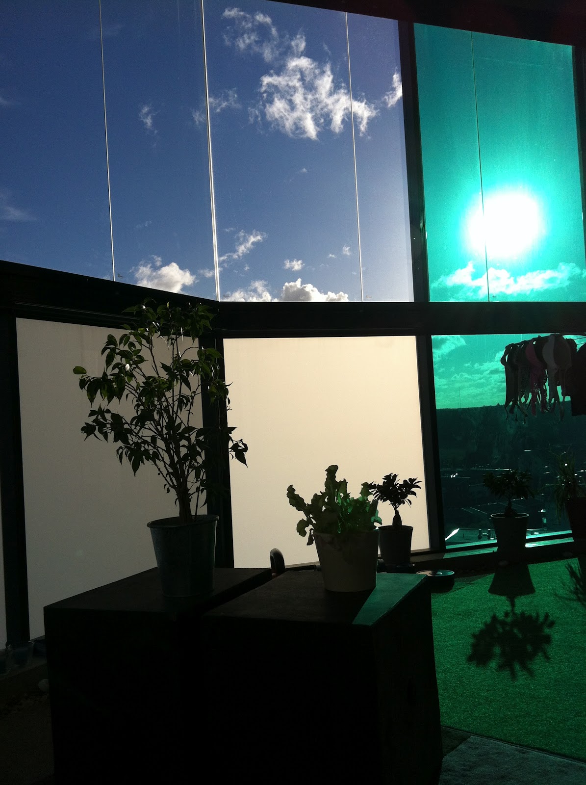 | Pieni osa parveketta. Pöydällä kasvaa oma salaatti! |