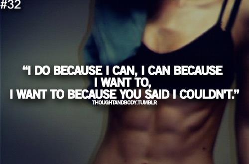 Teen tätä, koska haluan näyttää niille jotka väittivät etten siihen pysty. Pystyn, koska itsekurini on parempi kuin heidän. Päätökseni pitää, tuli mitä tuli.