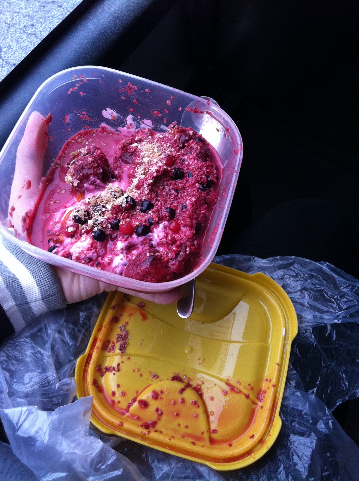 Ruoka-aika kun tulee, sillon syödään. No excuses! Brekkistä bussissa! Namnam. ;) |