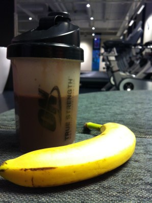 Treeni sujui todella hyvin ja kylläpä tuntui mukavalta. Olen aivan innoissani, että pitkään kadoksissa ollut ystäväni lihassärky on palannut! :) Parasta treenin jälkeen on protsku ja bansku! Tämä on vain hetkellistä luksusta, sillä dieetin edetessä myös treeniä ennen ja jälkeen nautittavat banaanit putoavat pois.