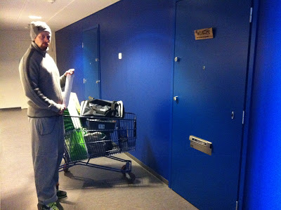 Salin jälkeen mentiin suoraan kauppaan sillä jääkaapissa oli enää valo jäljellä. Ostoksia tulikin sitten tehtyä melkein kokoviikon edestä, joten kantamuksia oli hieman liikaa kahdelle henkilölle. Otettiin sitten tutusti ostoskärryt, joihin ladottiin kassit ja työnnettiin se kotiin asti. Tällähetkellä se odottaa meidän eteisessä kun lähdetään taas shoppailemaan ja viedään se pois. Kätevää, eikö? ;)
