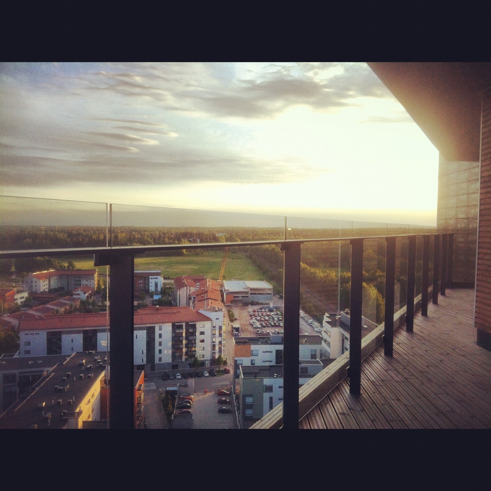 | Tällaiset on näkymät saunan terassilta. Myös saunassa on iso ikkuna tuohon suuntaan.