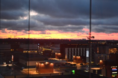 Aamu alkoi todella ikävästi. Päänsärky oli tallella edellisestä illasta, oli nälkä ja kroppa tuntui turvonneelta joka suuntaan. Sängystä sohvalle kulki uninen tieni. Ainoa iloinen asia oli taas maiseman uskomaton kauneus. Ihan hätkähtää ja luulee olevansa ulkomailla kun taivas on punainen ja pinkki. Wau.