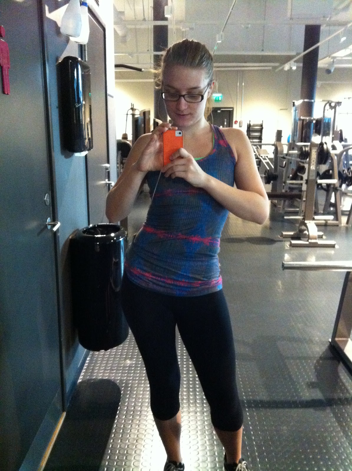 Kuulkaa. Treeni kulki ja lujaa! Alusta asti. Päädyin peilin eteen ennen treenini aloittamista ja näin sen, mitä pitääkin nähdä. Nimittäin treenatun, 4 vaatekokoa pienemmän itseni. (Älkää käsittäkö väärin, nimittäin välillä peiliin katsoessa näen vain entisen itseni ja vartaloni. Joten oli positiivista, että näin oman kehitykseni.) En voinut olla hymyilemättä ja huomaamatta kuinka päänsisäinen fiilis ja motivaatio vain kasvoivat. Tämä saikin itseeni uuden vaihteen päälle ja sain taas tehtyä jokaisen liikkeen hieman isommilla painoilla. Joihinkin viimeisiin sarjoihin pudotin kuitenkin painoja sillä liikkeen puhtaus kärsi.