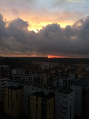 Taivaskin oli todella kauniina ja näkymä vaihtui kokoajan. Tässä loppuillan näkymä. Aika ihana punaisuus.