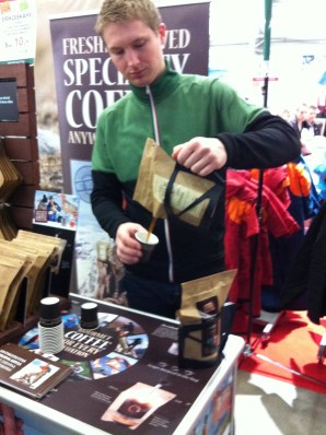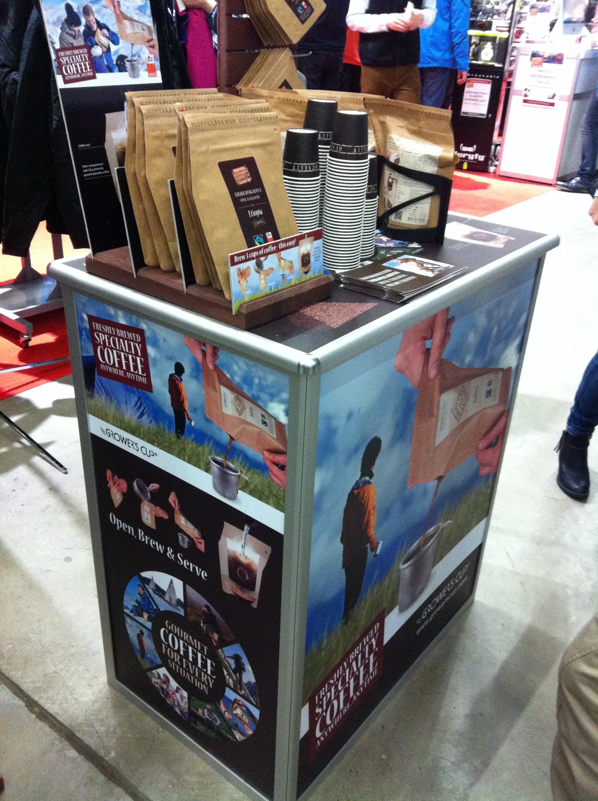 Messuista jäi käteen viisi pipoa, tpaita ja yllä olevaa kahvia. Kuinka helppoa onkaan kaataa kuumaa vettä pussiin, jossa kahvipurut ovat valmiina suodatinpussissa? Katsotaan miten toimii.