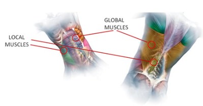 ”Ihmiskeho koostuu useista lihaskerroksista. Yksinkertaistamalla kehon lihasten rytmitystä voidaan ne jakaa kahteen isompaan ryhmään; syviin (LOCAL) ja uloimpiin (GLOBAL) lihaksiin. Syvien lihasten tehtävä on vakauttaa nivelten ja kehon hallinta kun uloimmat lihakset tuottavat liikkeeseen tarvittavan voiman.”