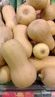 Kävimme päivällä ruokakaupassa ja pyörimme hedelmä-vihannes osastolla kiireettä. Silmiini osui myskikurpitsa, jonka itse tunnen paremmin butternut squash -nimellä. Tuo itselleni erikoinen hedelmä on ollut niin monesti suosituslistalla, rakkaimmassa fitness-lehdessäni, Oxygenissa, että päätimme kokeilla. Nappasimme kaikista parhaimmassa kunnossa olevan, kilohinta hieman alle 3€ eli ei paljoa.