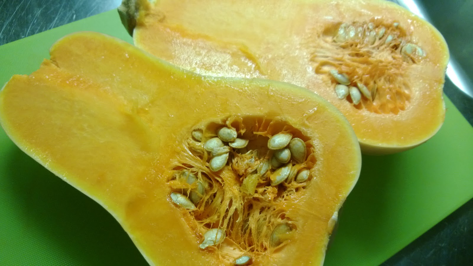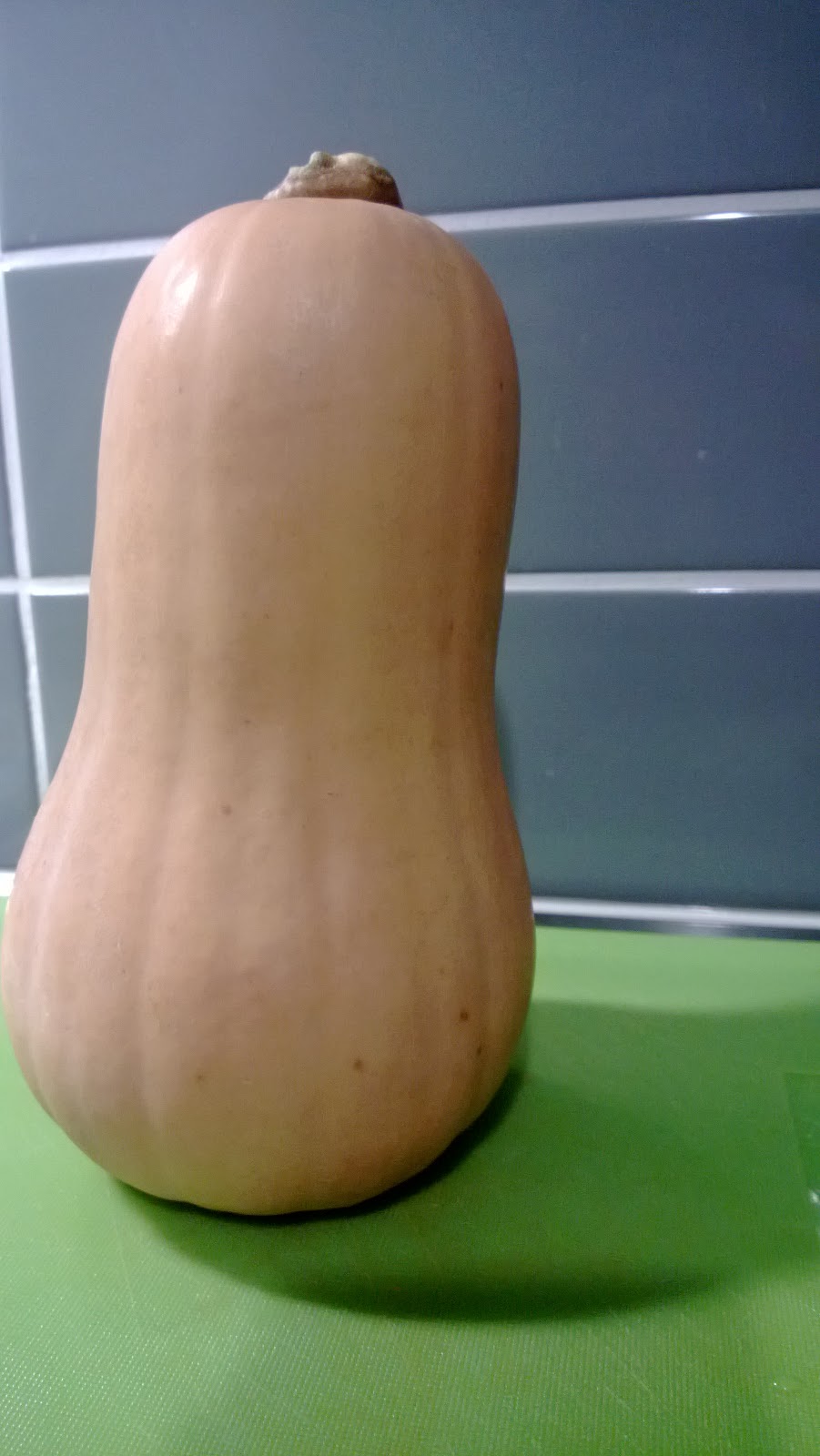 Kävimme päivällä ruokakaupassa ja pyörimme hedelmä-vihannes osastolla kiireettä. Silmiini osui myskikurpitsa, jonka itse tunnen paremmin butternut squash -nimellä. Tuo itselleni erikoinen hedelmä on ollut niin monesti suosituslistalla, rakkaimmassa fitness-lehdessäni, Oxygenissa, että päätimme kokeilla. Nappasimme kaikista parhaimmassa kunnossa olevan, kilohinta hieman alle 3€ eli ei paljoa.