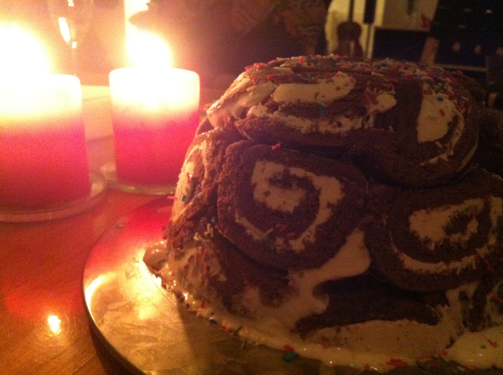 Loppu päivä sekä ilta vietettiin serkkujen luona nauttien venäläistä illallista ja heille ehkä jopa traditioksi muokkaantunutta jälkkäriä, josta kuva alla. En muista miksi he kakkua kutsuvat, mutta kääretorttu kerroksen alla on vaniliajätskiä. Nam. Nyt on taas tullut herkuteltua, joten aika olla taas vähän tarkempi.