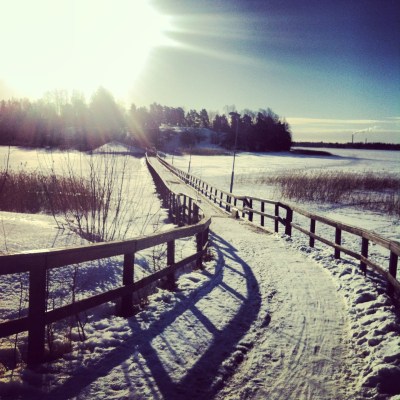 Herään aamulla väsyneenä, yöunet jäivät toivottua lyhyemmiksi. Nyt ei kuitenkaan ole aikaa nukkua, mietiskelyjen jälkeen päätän lähteä nopealle aamulenkille. Aurinko paistaa, ilma on kirkas ja kirpsakka. Olen koukussa jään rapsahteluun lenkkareiden alla, omalla tavallaan se rauhoittaa.