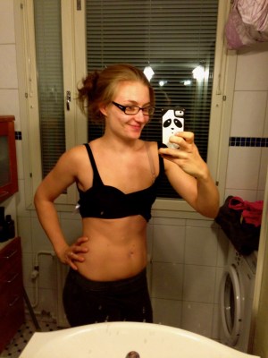 Sunnuntai koitti nopeammin kuin kuvittelin. Se oli päivä jolloin treffasin Sadun toistamiseen, agendana kuntocheckkaus. Kuinka ruokavalio on purrut kiinni ja sujuuko treeni. Jalkatreenin jäljiltä tutisevin jaloin käppäsin toimistolle, jossa sitten arvionti tapahtui. Onnen kyyneleet, ilon kylmätväreet ja hymy, joka varmasti näkyi kuuhun. Valmentaja oli tyytyväinen!! Kroppa on tiivistynyt todella hyvin ja tästä on hyvä jatkaa. Muutama viilaus ruokavalioon vielä viimeisille päiville ennen kuvauksia ja homma sujuu. Kovasti olette kyselleet tämänhetkistä kuntoa, joten tässä tulee muutama kuva. Iltapainotteisesti otettuja, mutta mielestäni vatsan seutu kehittynyt huimasti. Enemmän kuin osasin toivoa.