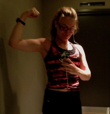 | Tämän aamuiselta lenkiltä. Pyllykin nousee! Tekemistä tosiaan koko kropassa on vielä, mutta pitkälle on tultu. Enää 8 päivää kuvauksiin, välineet ovat kunnossa, nyt vain runtataan loppuun asti! :) |