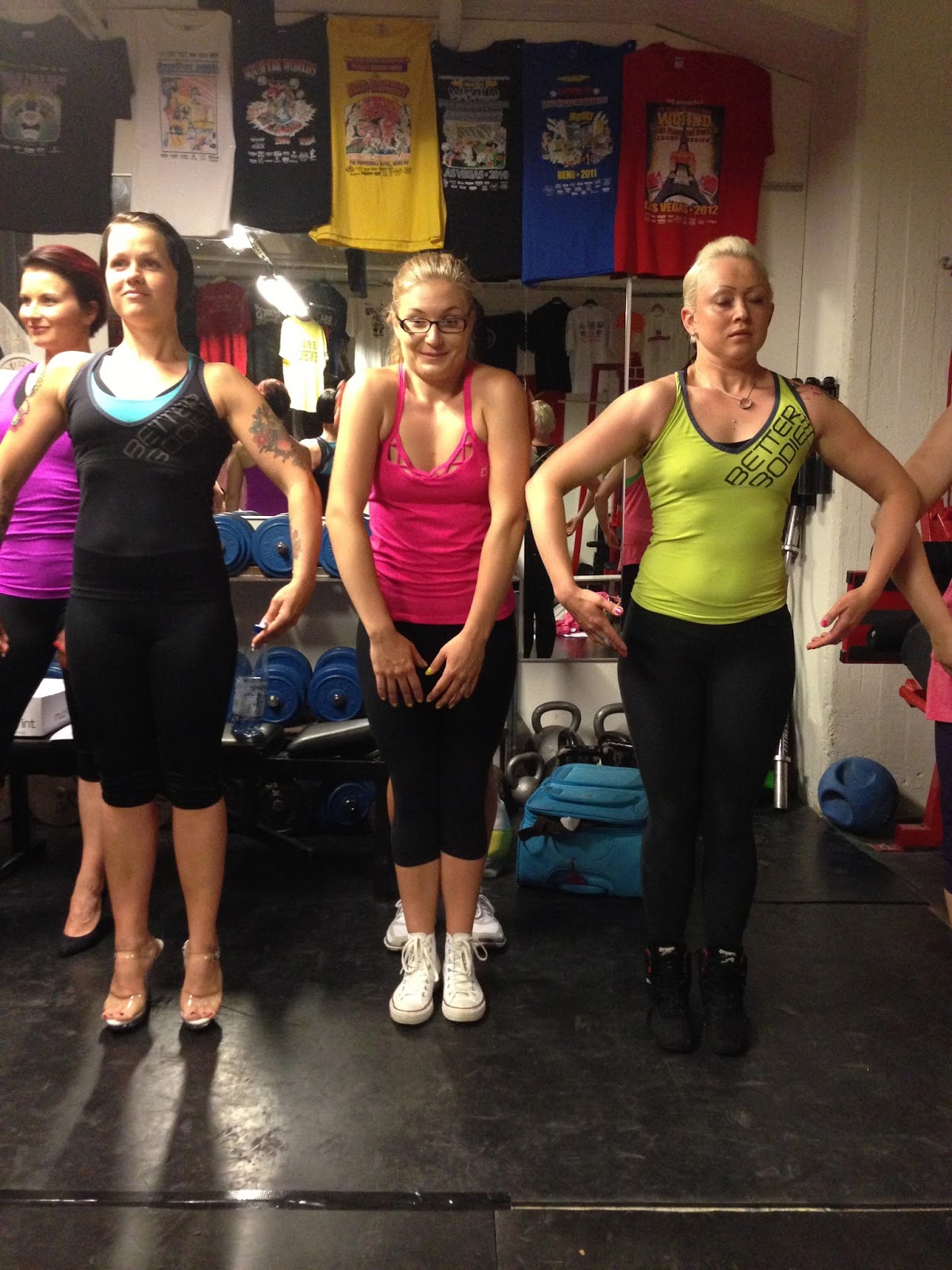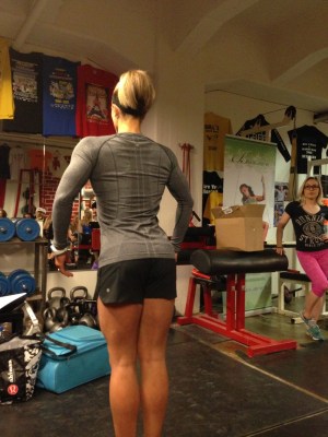 Kävimme läpi myös sekä Body Fitneksen että Bikini Fitneksen poseerauksia. Elämäni ensimmäiset Body-poseeraukset, tästä se tie lähtee. Muiden lähtiessä nopealle ruokatauolle, jäin muutaman muun kanssa harjoittelemaan poseerauksia lisää. Nicole kävi jokaisen luona yksitellen ja rauhallisesti, auttaen hakemaan oikean asennon. Itselläni on ongelmia lapojen avauksen kanssa, ne tuppaavat törröttämään todella ikävästi. Myös vasen olkapääni on poseeratessa ylempänä kuin oikea. Nämäkin varmasti paranevat vain harjoittelemalla, siinäkin yksi syy miksi kilpatavoite on ”vasta” vuodelle 2015. Haluan kunnollisen paketin. Hiota sekä fysiikan että esiintymisen niin täydellisiksi kuin vain voimme.