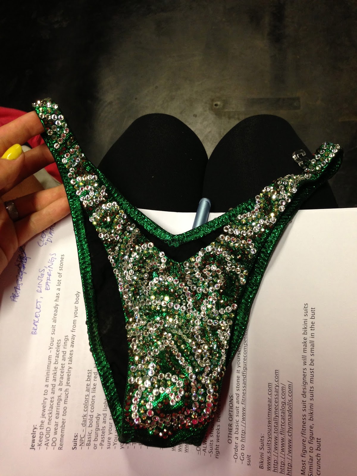 Nicole esitteli meille myös kisa-asujaan. Ei ole hirveästi kropan peitettä. Toisaalta Bikini Fitneksessä vielä naftimmat.