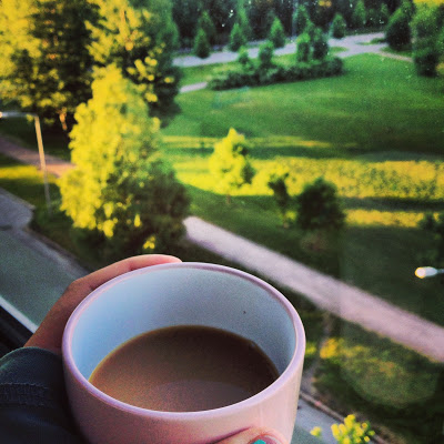 Herätyskello herätti upeaan pilvettömään säähän klo 05. Kahvi tippumaan, tavaroita kasaan. Kerkesin nauttimaan kupillisen kahvia parvekkeellamme auringon paisteessa. Joogamatto rullalle, vesipulloon vettä ja lämmintä päälle. Edessä olisi aamujoogatunti ihanan kollegani kanssa. Hän on joogannut pitempään ja olin ilmoittanut hänelle haluavani seuraavalle kerralle mukaan. Tänään oli tuo päivä.