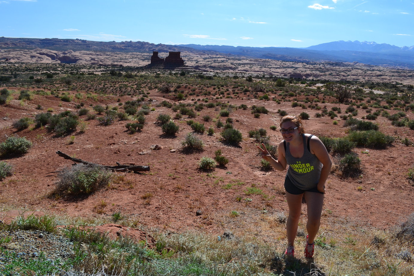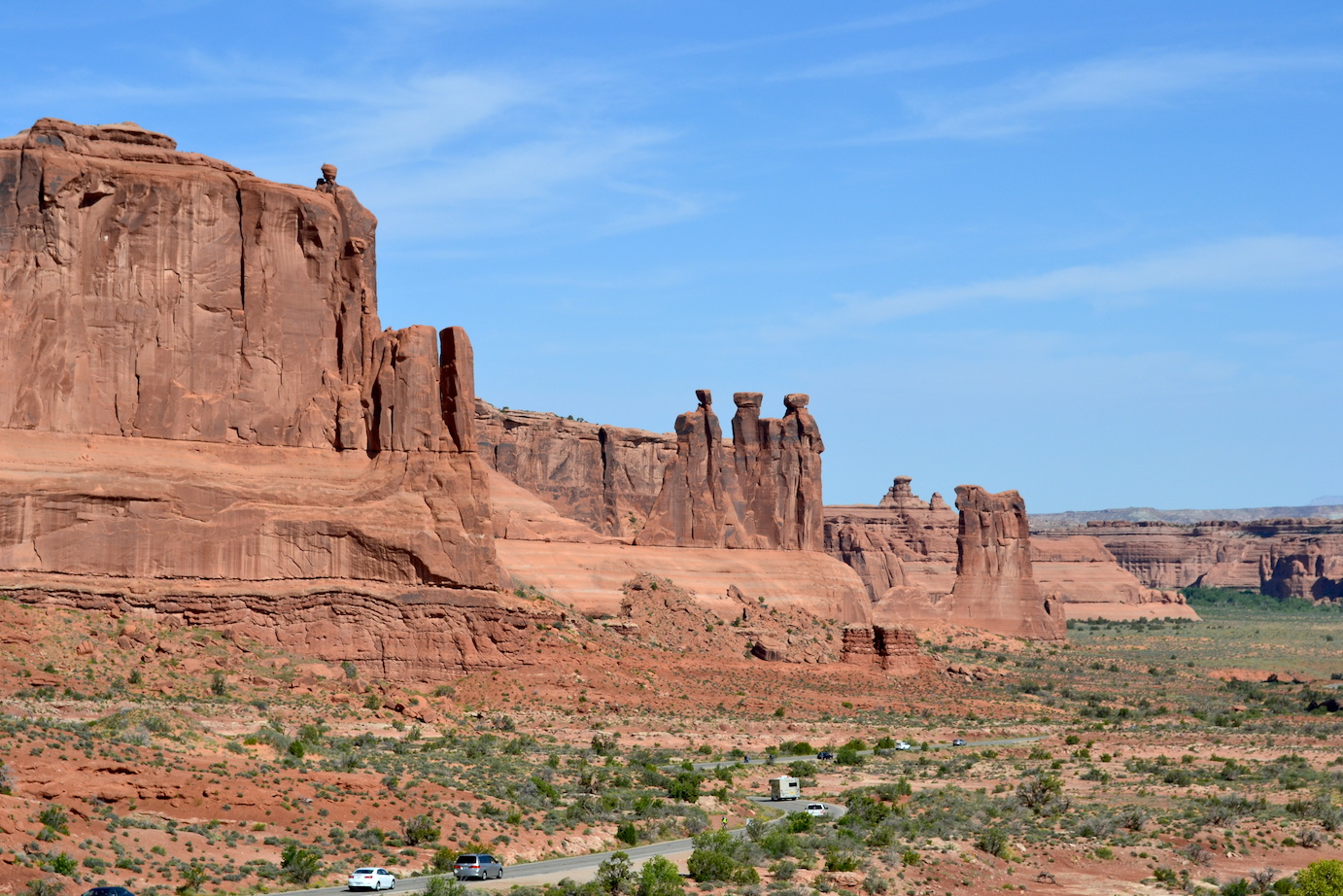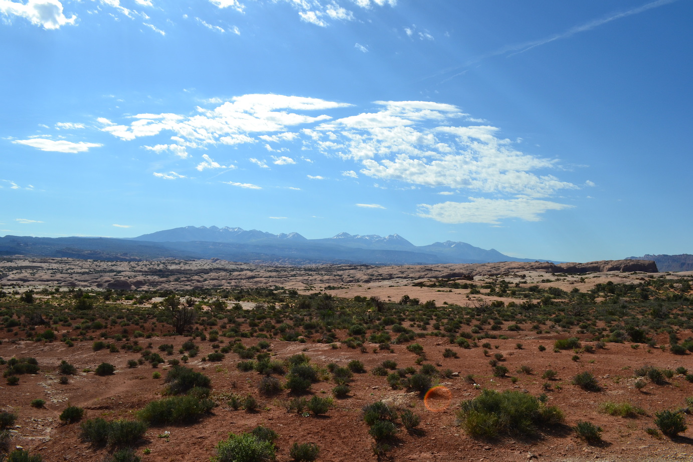 Arches on luonnonpuisto Utahin itälaidalla. Niin lähellä Coloradon rajaa, että pystyt näkemään Coloradon Pikes Peak vuoret. Ne vuoret, jotka koristavat Mikon lempioluen, Coors Lightin, etikettiä. Ajomatka Green Riverilta kohti luonnonpuistoa on uskomaton, eikä ihme – ajoimme Scenic Roadia.