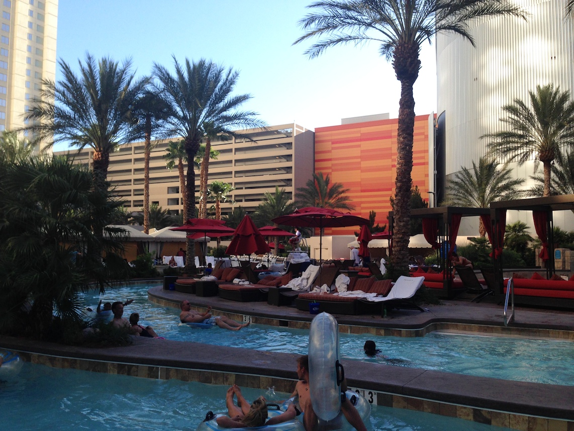 Tuolloin majotuimme tuttavapariskunnan luona, paikallisten joukossa. Roadtripille halusimme hieman luksusta otimme hotellihuoneen keskeltä Strippiä neljän tähden Monte Carlosta. Sijainti oli pysähdyksellämme tärkeää, sillä vietimme paikanpäällä (lue: uima-altaalla) ainoastaan yhden kokonaisen päivän. Se oli hikinen +35 asteinen – ei tullut mieleenkään liikahtaa altaalta ennen iltakuutta. Brunaa pintaan ja aivot narikkaan – täyslepoa!